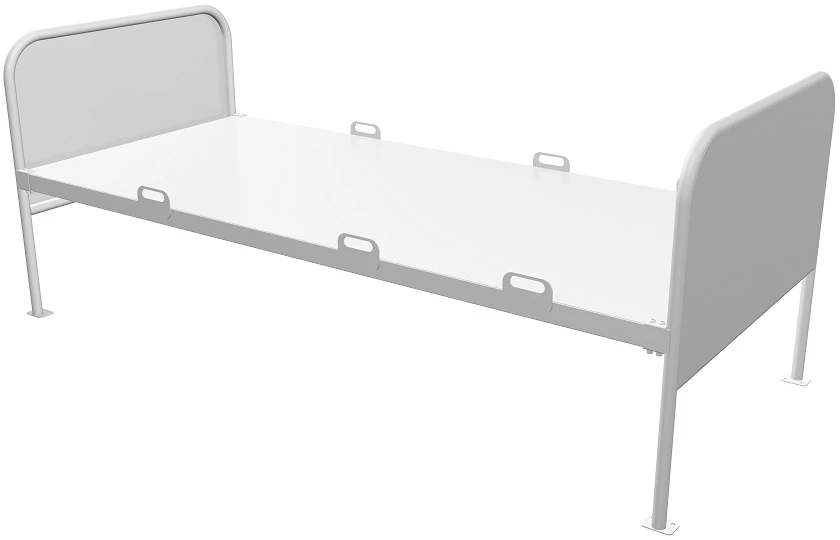 - Односекционное ложе и спинки кровати снабжены обшивкой из металлического листа 0.8 мм.
