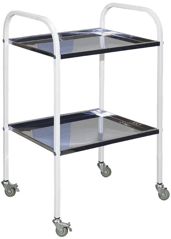 - Полки образуют два уровня хранения. Выполнены из высокопрочной нержавеющей стали 0.8 мм, устойчивой к возникновению трещин и сколов, а также к обработке дезинфицирующими средствами.